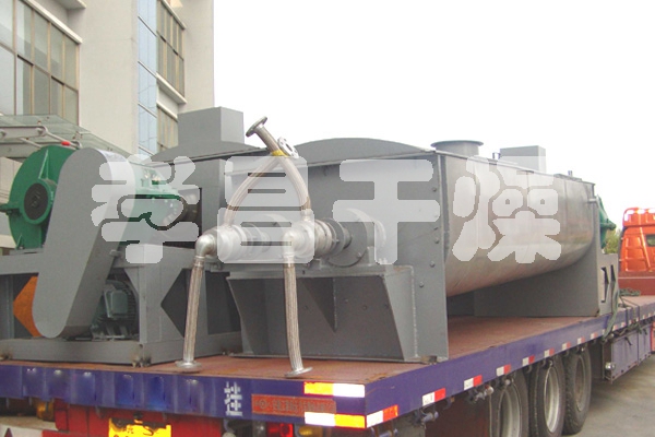 空心軸上密集排列著楔型中空漿葉,熱介質經空心軸流經漿葉。單位有效容積內傳熱面積很大,熱介質溫度從-40℃到320℃,可以是水蒸汽,也可以是液體型:如熱水、導熱油等。間接傳導加熱,沒有攜帶空氣帶走熱量,熱量均用來加熱物料。熱量損失僅為通過器體保溫層向環境的散熱。楔型漿葉傳熱面具有自清潔功能。物料顆粒與楔型面的相對運動產生洗刷作用,能夠洗刷掉楔型面上附著物料,使運轉中一直保持著清潔的傳熱面。漿葉干燥機的殼體為Ω型,殼體內一般安排二到四根空心攪拌軸。殼體有密封端蓋與上蓋,防止物料粉塵外泄而充分發揮作用。